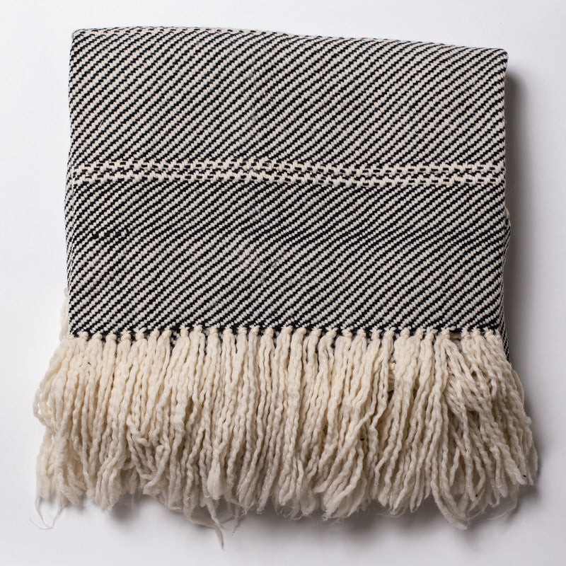 Eliana Throw Warm up a sofa or bed with our soft and chunky dark grey with cream tussles throw. Hand-loomed by skilled artisans, the wool-blend throw layers on the charm with a two-toned texture and long fringe. The flowing texture of this throw will wrap you and your bedroom or living room furnishing in an ambiance of security and comfort. Or keep it folded away in the den for cozy movie nights and lazy Sunday mornings with soothing color combinations. Embroidered lines worked throws are the best for all weather.