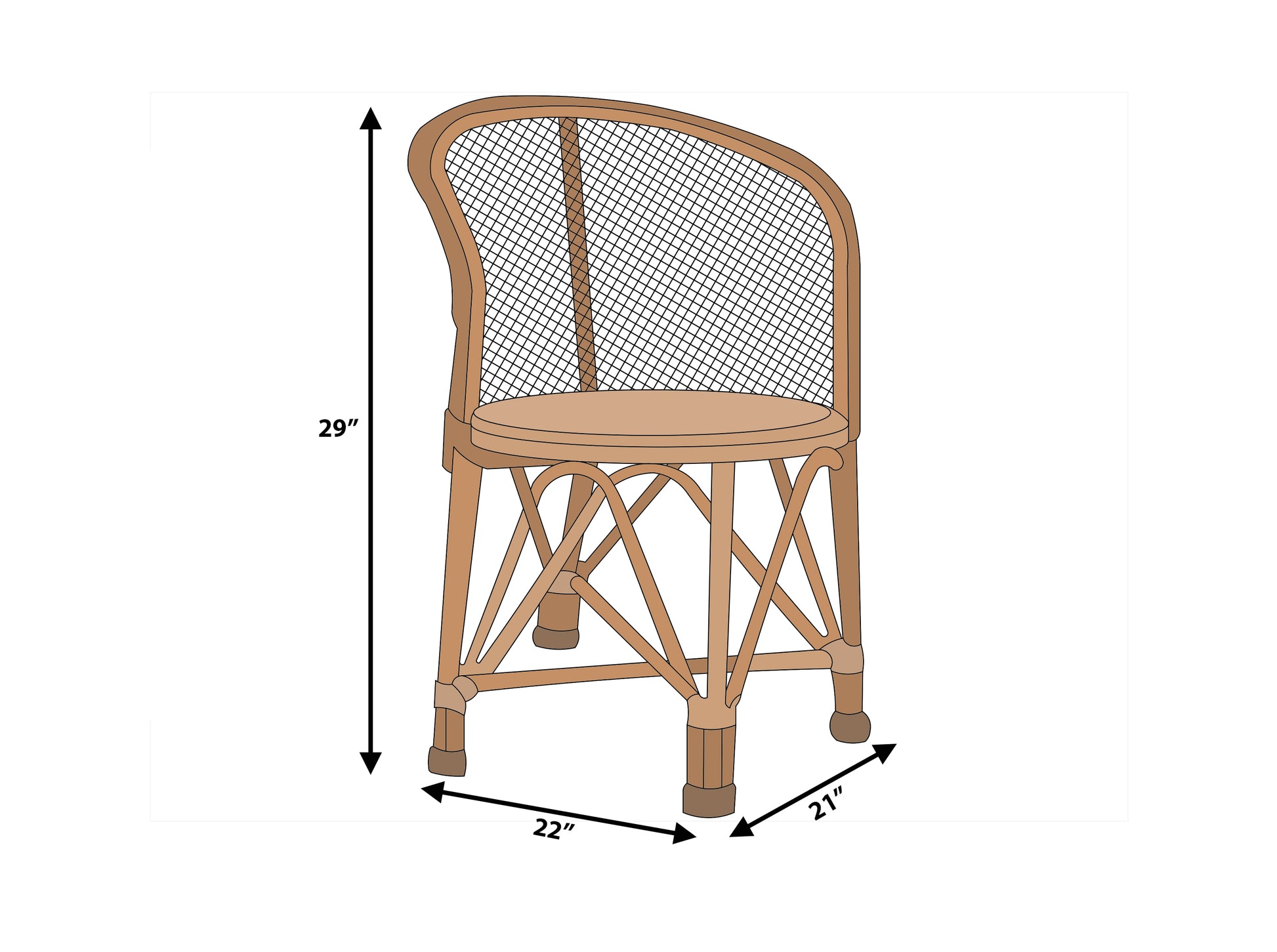 This rattan chair adds a simple yet stylish bohemian design and breezy style to a living or dining space. This piece strikes a woven grid throughout the seat and back. The neutral rattan has the versatility to coordinate with most color palettes. , this curving chair nods to colonial furniture, providing a sturdy addition to your living space that doesn't take up too much visual weight. The neutral rattan finish gives an airy and understated look.